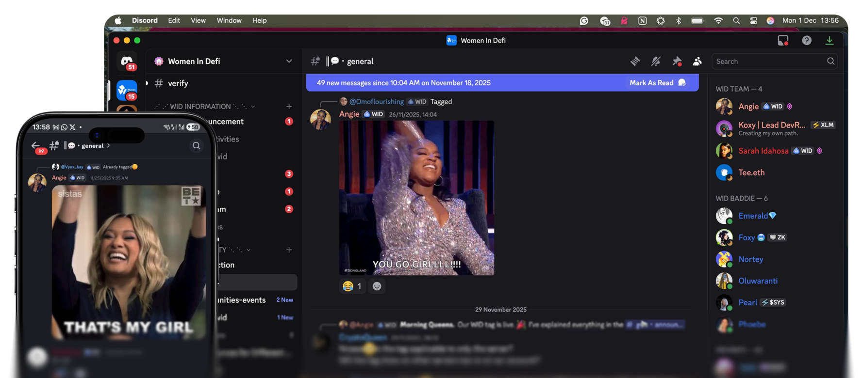 The WID Community is a home for women who are curious and ready to grow in the Web3 ecosystem. It's a space built on learning, connection, and genuine support where members don't just join a server; they join a circle of women who want to see each other win.